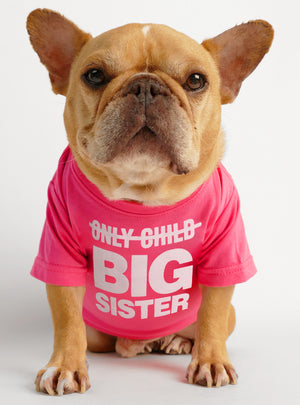 No longer an only child smh. Crew neck dog shirt, perfect for any four-legged friend. Measure your dog's chest at the thickest part around. If you're between sizes, go with the larger size.