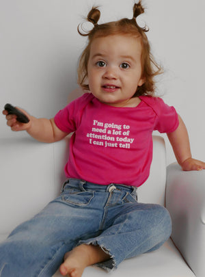 I'm going to need a lot of attention today I can just tell. An ideal gift for any new parent. These one-piece bodysuits feature lap shoulders to make it easier for the many times a day that parents have to change baby's outfit.