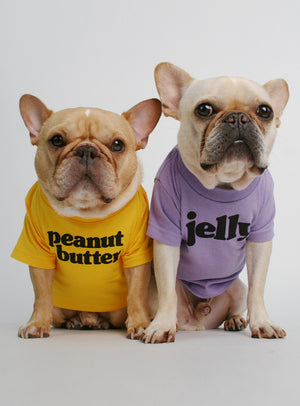 Crew neck dog shirt, perfect for any four-legged friend. Measure your dog's chest at the thickest part around. If you're between sizes, go with the larger size. *This listing is for the "Peanut Butter" shirt only.