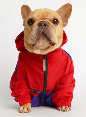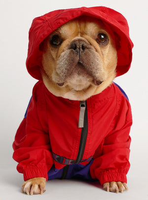 Fits chest size 24-28". Huey (the model) weighs 20 lbs, measures 21" around the thickest part of his chest. The sleeves can be cuffed for an extra fitted look.