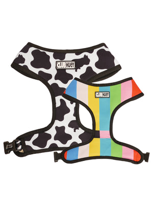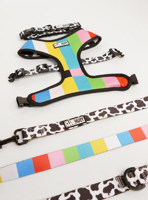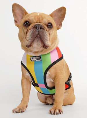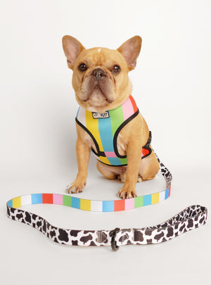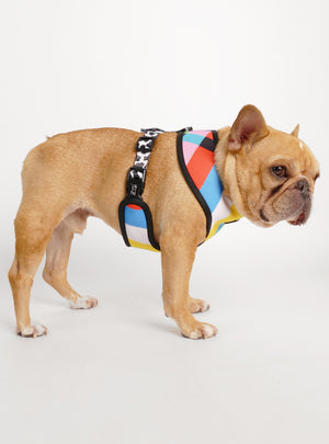 You might as well be walkin' on the sun with not one, but TWO fun harness prints. This harness is perfect for pups that like to switch up their style with minimal effort. It looks good and it moves well too: made from durable neoprene on both sides, this harness is water repellant and easy to care for (oh, and it just plain looks super cool too!)