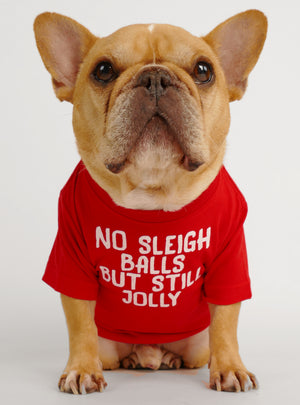 No sleigh balls but still jolly. Christmas Theme Holiday Crew neck dog shirt, perfect for any four-legged friend. Measure your dog's chest at the thickest part around. If you're between sizes, go with the larger size.