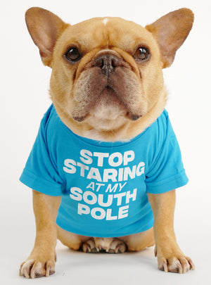 Stop staring at my South Pole. Christmas Edition Crew neck dog shirt, perfect for any four-legged friend. Measure your dog's chest at the thickest part around. If you're between sizes, go with the larger size.