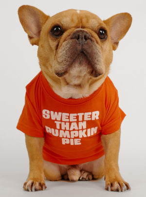 Thanksgiving hero. Crew neck dog shirt, perfect for any four-legged friend. Measure your dog's chest at the thickest part around. If you're between sizes, go with the larger size.