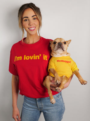 I'm lovin' it. This listing comes with 2 (two) tees. One in human sizing and one in dog sizing. Pick your size for each of the 2 t-shirts.