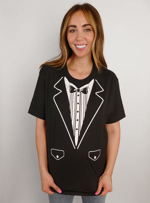 Tuxedo Tees that will have you ready for any formal event. This listing comes with 2 (two) tees. One in human sizing and one in dog sizing. Pick your size for each of the 2 t-shirts.