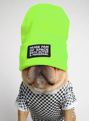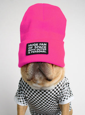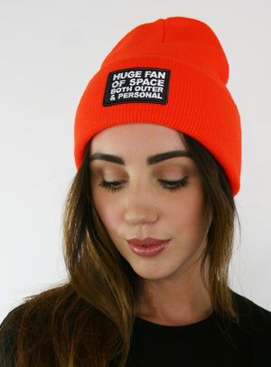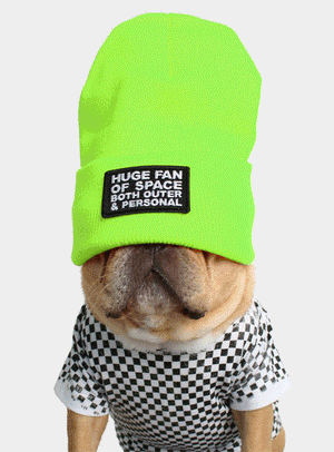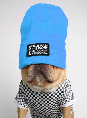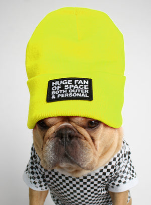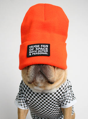 Huge fan of space, both outer and personal. Fully embroidered patch on a 100% acrylic knit cuff beanie. Approx. 12 ½" long. Made in the USA.
