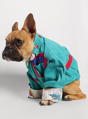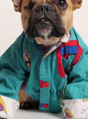 Fits chest size 20-25". Gibson (the one-eyed model) weighs 18 lbs, measures 20" around the thickest part of his chest. The sleeves can be cuffed for an extra fitted look.