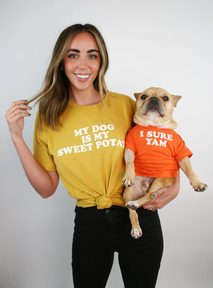 This listing comes with 2 (two) tees. One in human sizing and one in dog sizing. Pick your size for each of the 2 t-shirts.