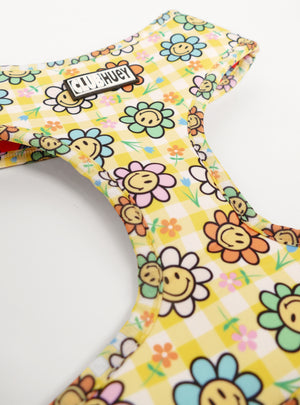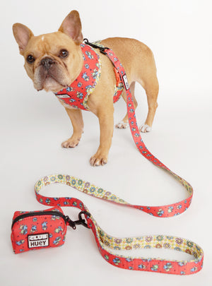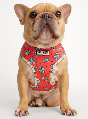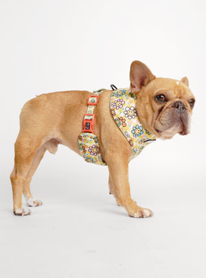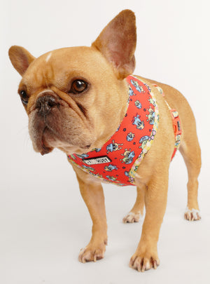 You might as well be walkin' on the sun with not one, but TWO fun harness prints. This harness is perfect for pups that like to switch up their style with minimal effort. It looks good and it moves well too: made from durable neoprene on both sides, this harness is water repellant and easy to care for (oh, and it just plain looks super cool too!)