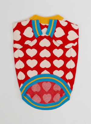 Soft knit pet sweater, featuring: 100% cotton. Huey (the model) has a chest measurement of 20" and wears size XL.