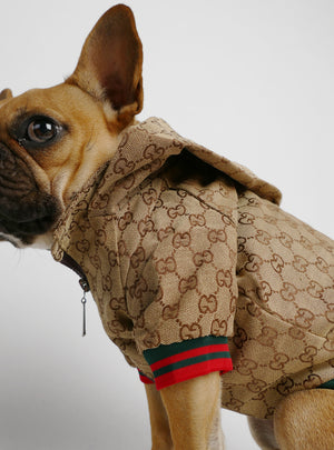 Become the hypebeast in this designer dog hoodie. Gibson (the model) is wearing size XL and has a chest girth of 21 in. Please see size chart below. If you're between sizes, go with the larger size.