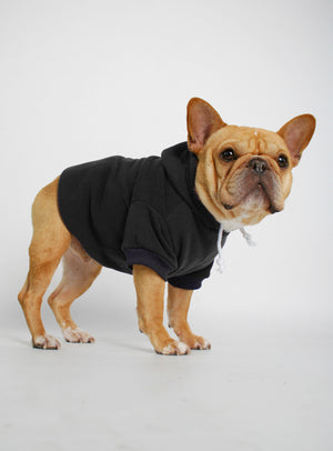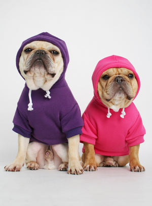 The Jasper Hoodies will ship out on Oct. 11th. This dog hoodie features: polyester construction, drawstring hood adjustment, hole on the back for easy leash access. Care instructions: machine washable, hang dry. Huey (the model) has a chest measurement of 22" and is wearing size Large.